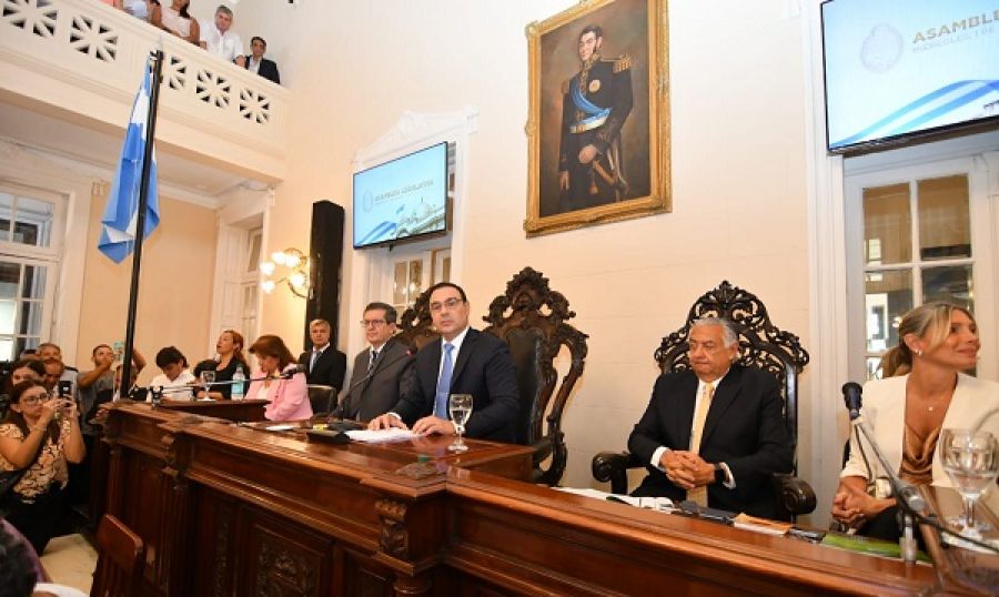Ya en el pórtico de entrada al Palacio, el Gobernador será recibido por el Vicegobernador; el presidente de la Cámara de Diputados (Pedro Cassani) y los integrantes de la Comisión de Interior, para pasar al recinto de sesiones. En el estrado, se ubicarán el Gobernador y el Vicegobernador (en su rol de presidente de la Asamblea); el titular de Diputados; y las secretarias de las cámaras de Senadores y de Diputados.