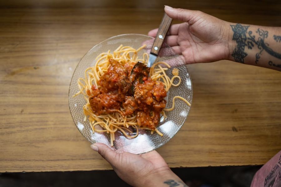 En Pablo Podestá, Nora sirve un generoso plato de fideos con salsa para Giovanni, su hijo de 3 años. “Encima Gio es de buen comer, así que no hay manera de dividir la porción con su hermano mayor”, dice la mujer con una mueca de lamento.
