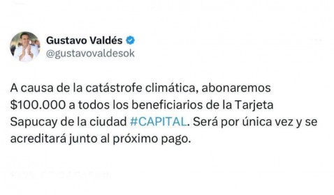 “Esto se suma a la línea de créditos a comerciantes y prestadores de servicios”, agregó el mandatario, haciendo referencia a la ayuda de hasta $15.000.000 disponible para quienes hayan sido afectados por la reciente catástrofe climática.