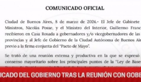 Se quedó en armar una comisión con los ministros de Economía provinciales con los de Nación para avanzar con el Pacto de Mayo y desde mi ministerio encabezaremos el diálogo político