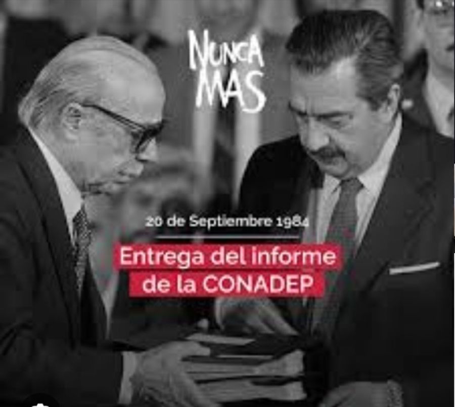 El 20 de Septiembre de 1984 la CONADEP (Comisión Nacional sobre la Desaparición de Personas) le entrega al Presidente Raúl Alfonsín su emblemático informe “NUNCA MÁS” (Foto emblemática en que Ernesto Sábato le entrega al Presidente Raúl Afonsín), que acredita en forma fehaciente y documentada que existió un plan criminal de secuestro, torturas, asesinatos y desaparición forzada de personas, pudiendo informarse en ese momento 8.961 personas desaparecidas, lo que fue un logro muy importante ya que naturalmente era y es una tarea dificilísima descubrir que hicieron los militares con esas personas.