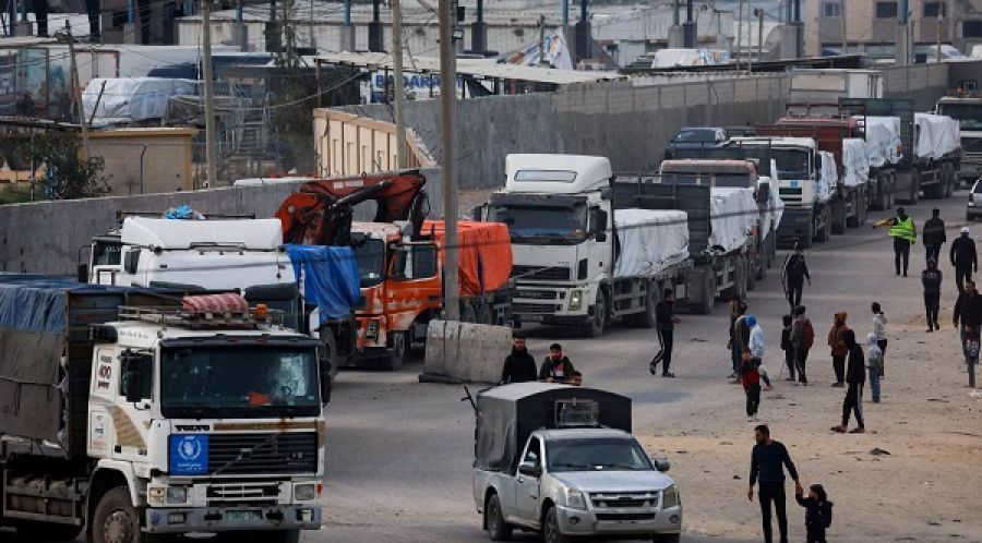 Desde este paso fronterizo, vemos la angustia y la crueldad de todo esto. Una larga fila de camiones de ayuda bloqueados a un lado de las puertas, la larga sombra del hambre al otro