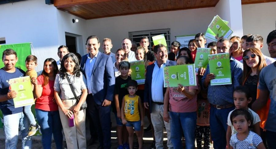 El gobernador Gustavo Valdés junto al intendente de Cruz de los Milagros Alberto Quiroz enc abezaron acto de entrega de viviendas y firmaron un convenio por 10 unidades más