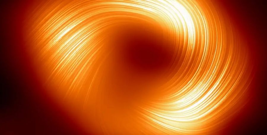 Científicos del Telescopio Horizonte de Sucesos (EHT, por sus siglas en inglés) descubrieron la presencia de campos magnéticos potentes y organizados que giran en espiral desde el borde del agujero negro supermasivo Sagitario A* (Sgr A*), en el centro de la Vía Láctea.