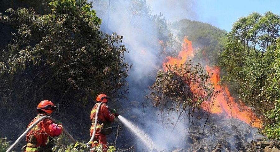 El incendio se desató en la aldea de Diantou, en la localidad de Erjie, distrito de Jinning, y no hay asentamientos o infraestructura importante cerca.