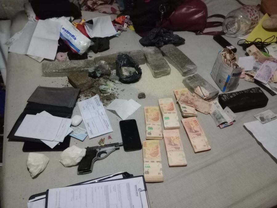 La Policía de la provincia incautó un arma de fuego calibre 22 mm, una réplica de 9 mm, una mochila con guantes y una bolsa con dinero junto a una carga de marihuana y cocaina. Un detenido .
