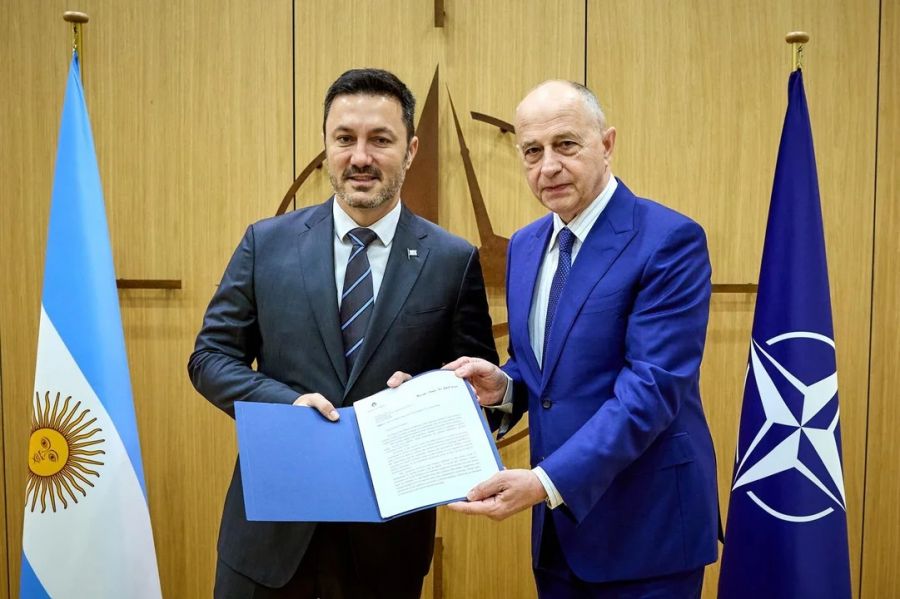 “Me reuní con Mircea Geoana Secretario General Adjunto de la OTAN. Le presenté la carta de intención que expresa la solicitud de Argentina en convertirse en un socio global de esta organización”, reveló el ministro a través de sus redes sociales.