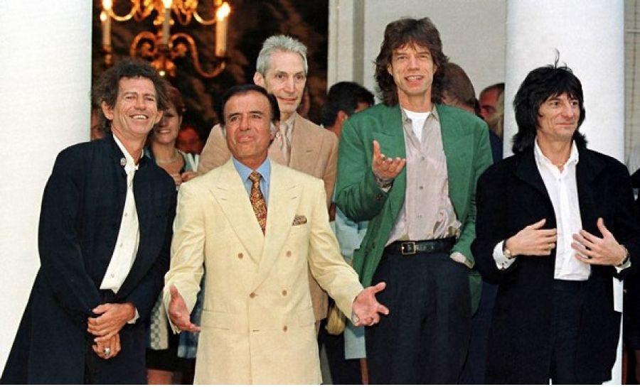 El ex presidente Carlos Menem con los Rolling Stone.