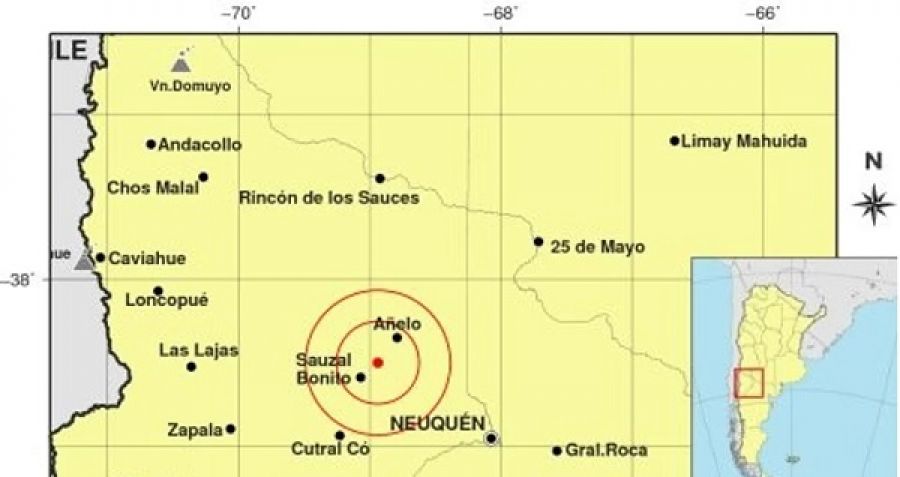El temblor se inició a una profundidad de 10 kilómetros y su epicentro se produjo a 88 kilómetros al noroeste de Neuquén, 456 kilómetros al sudoeste de Santa Rosa y a 57 kilómetros al noreste de Cutral Có.