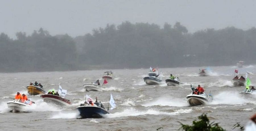 1160 equipos y 3500 pescadores, el gobernador Gustavo Valdés entre ellos protagonizaron este sábado la tradicional ceremonia de largada de lanchas en la 47ª Fiesta Nacional del Surubí” en Goya