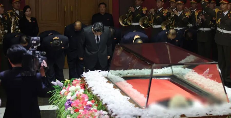 En imágenes difundidas por los medios oficiales, el líder actual del hermético régimen, Kim Jong-un, hace una reverencia ante el ataúd del "veterano revolucionario", dijo la agencia de noticias KCNA.