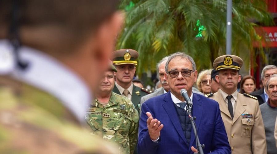 Tras entonarse las estrofas del Himno, en la zona de la pérgola -sobre la peatonal Junín-, el intendente hizo uso de la palabra y destacó que “la canción patria es símbolo de unidad: juntos debemos trabajar por nuestro bendito país”.