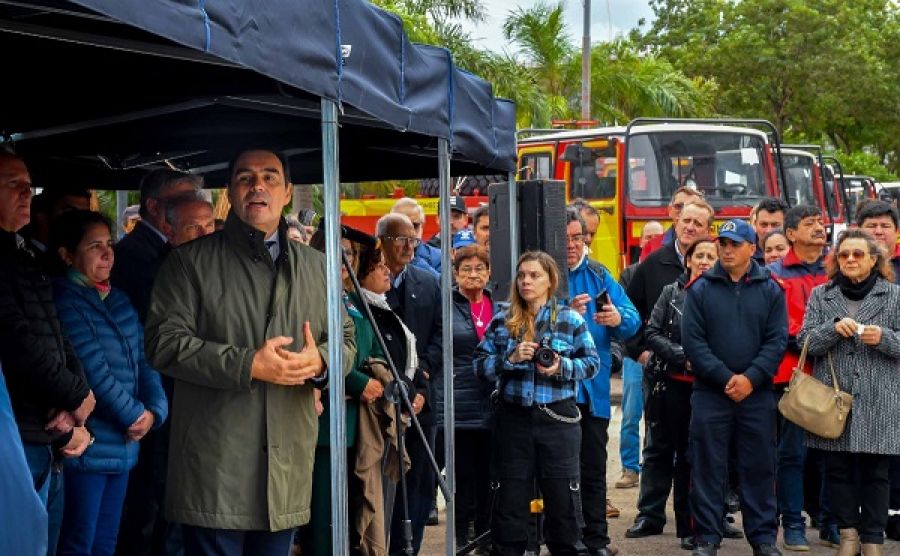 El gobernador Gustavo Valdés entregó este lunes 22 autobombas a asociaciones de bomberos voluntarios de toda la Provincia. Las mismas fueron adquiridas por el Gobierno de Corrientes con el objetivo de dar una respuesta ágil y eficaz ante incendios forestales, protegiendo así a los habitantes y a los bosques de todo el territorio correntino. Durante el acto, realizado en la Costanera de Capital, el Mandatario prometió apoyo para el centro de entrenamiento que la Federación de Bomberos Voluntarios tiene proyectado.