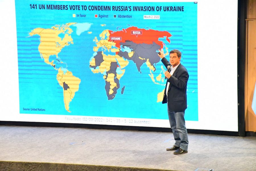 El gobernador Gustavo Valdés acompañó este viernes al politólogo con renombre internacional Andrés Malamud en el marco de conferencia donde se abordaron distintos escenarios políticos en la Argentina en el contexto de "Un mundo turbulento".