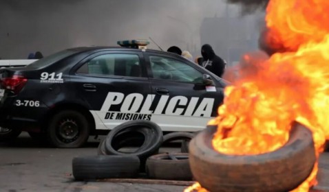 La protesta policial continuaba este martes tras cinco días de acampe frente a la sede del comando radioeléctrico en Posadas