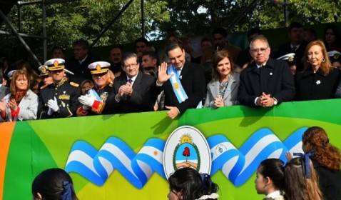 Participó de la ceremonia de izamiento de la Bandera nacional junto al intendente Eduardo Tassano en la plaza 25 de Mayo además realizó el saludo protocolar en Casa de Gobierno y participó del solemne Tedeum en la iglesia Nuestra Señora de la Merced.