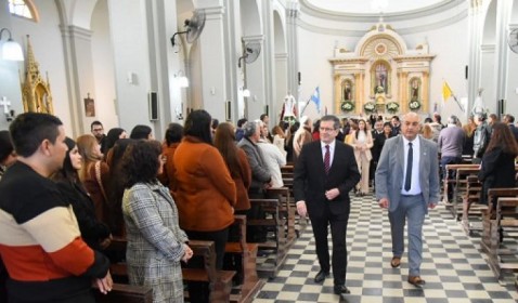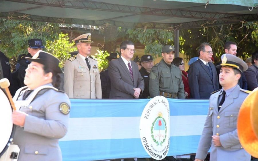 El vicegobernador, Pedro Braillard Poccard, encabezó el homenaje junto al Jefe de la Agrupación III “Corrientes” de la Gendarmería Nacional, Comandante Mayor Claudio Puente, y el intendente de la ciudad, Eduardo Tassano.