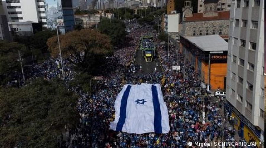Una enorme bandera israelí fue portada por la multitud, símbolo del fuerte apoyo del movimiento evangélico y ultraconservador de Brasil a ese país en medio de la guerra en la Franja de Gaza. También, se produce mientras aumentan las tensiones entre Israel y el Gobierno del presidente brasileño, el izquierdista Luiz Inácio Lula da Silva, que el 29 de mayo retiró a su embajador en Tel Aviv, que no será sustituido.