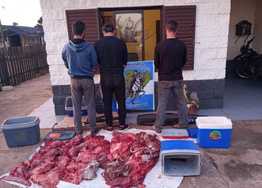 Mientras realizaban operativos de control en Ruta Provincial N°114 a la altura del Paraje Rincon Poi, detuvieron la marcha de tres camiones, hallando y secuestrando productos cárnicos de animales vacunos y silvestres y dos armas de fuego.