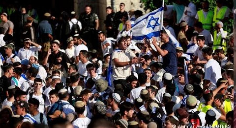 Decenas de miles de judíos israelíes participaron el miércoles en una marcha nacionalista en la parte ocupada y anexada de Jerusalén, que dejó escenas de tensión y se saldó con 18 arrestos, según la policía.