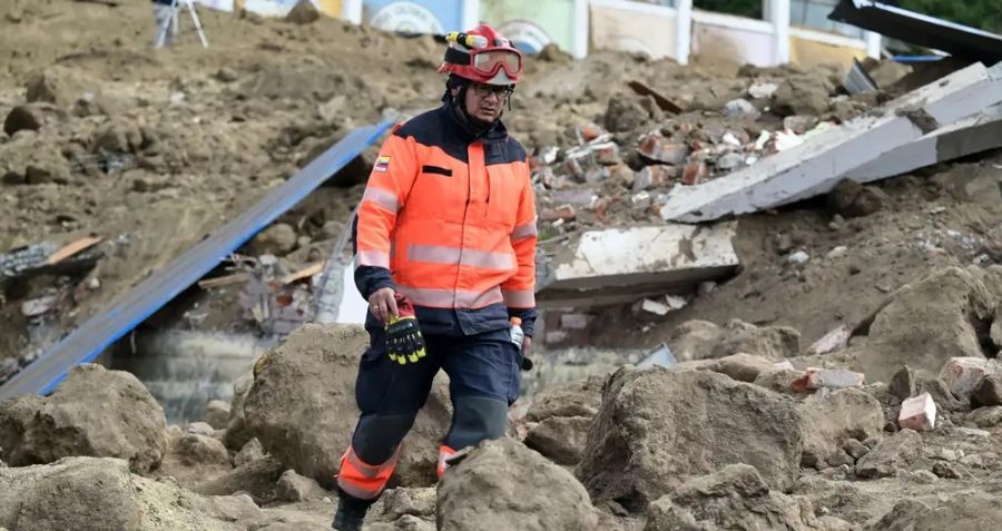"Debido a las lluvias en el sector se produjo un deslizamiento de magnitud que afecta a personas y maquinaria", precisó la estatal Secretaría Nacional de Gestión de Riesgos, en un mensaje enviado a medios.