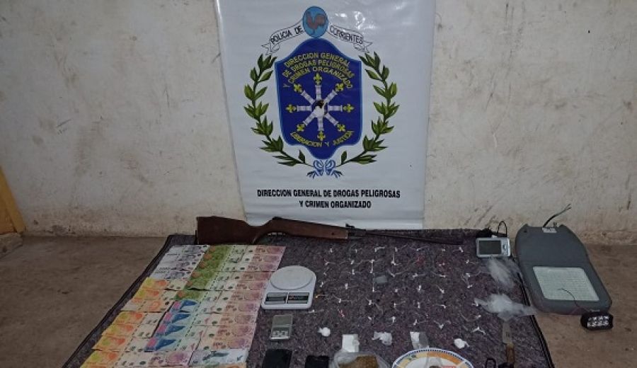 En el lugar secuestraron varios envoltorios de polietileno conteniendo “bochitas” de sustancia blanquecina, un envoltorio con sustancia de origen vegetal (cogollo), un aire comprimido, dos balanzas, tijeras, un teléfono celular, dinero en efectivo (moneda argentina y extranjera).