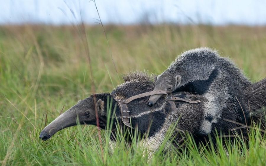 Se registró a la primera cría del quinto núcleo poblacional de oso hormiguero gigante en Yerbalito, al norte del Gran Parque Iberá.
