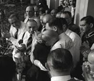 Tenemos que recordar para la presente y para las futuras generaciones que, con el Gral. Perón, se produjo la irrupción social y política de la clase trabajadora argentina. Que, fue él quien hizo posible su participación en el 50% del ingreso nacional y en el ejercicio del poder político, y por fin, el reconocimiento de sus derechos con el rango constitucional que le dio el Art. 38 de la Constitución Justicialista, derogado en 1956 por un bando militar de la tristemente célebre “revolución fusiladora”. Fue el Gral. Perón, quien por primera vez reconoció la legalidad de los sindicatos, y a los trabajadores el fuero laboral, el aguinaldo, las vacaciones pagas, los convenios colectivos, las Obras Sociales, la universalización de las jubilaciones, y que, hacia el año 1975 le dio a los trabajadores con la ley 20.744 un verdadero código del trabajo fundado en el principio de la justicia social. Código del trabajo sistemáticamente vaciado con la mentada flexibilización laboral a partir del año 1976 con la dictadura cívico militar y en particular en los 90 con el giro hacia la derecha neoliberal del ex presidente Carlos Menem.-