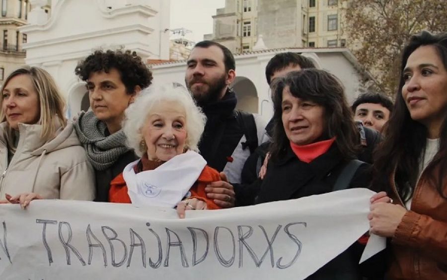 En la siesta de este jueves, organismos de derechos humanos, agrupaciones culturales, sociales y políticas y diversas personalidades reclamaron en la Plaza de Mayo de la Ciudad Autónoma de Buenos Aires por la continuidad de la búsqueda de los nietos y nietas y de las políticas de memoria.
