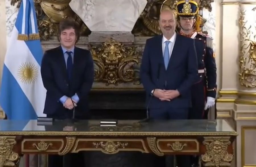 El presidente Javier Milei tomó juramento al flamante ministro de Desregulación y Transformación del Estado, Federico Sturzenegger, durante un acto en el Salón Blanco de Casa Rosada.