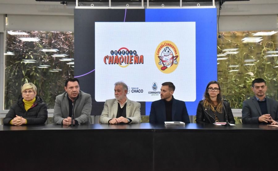 Participaron de la conferencia de prensa el presidente de Lotería Chaqueña, Lucas Apud Masín; el secretario de Asuntos Estratégicos, Marcos Resico; la ministra de Educación, Sofía Naidenoff; la ministra de Desarrollo Humano Carina Botteri Disoff; en nombre del directorio de la lotería de Corrientes, José Humberto Gómez Colombo y el vocal oficial de Lotería Chaqueña, Juan Chaussivert.
