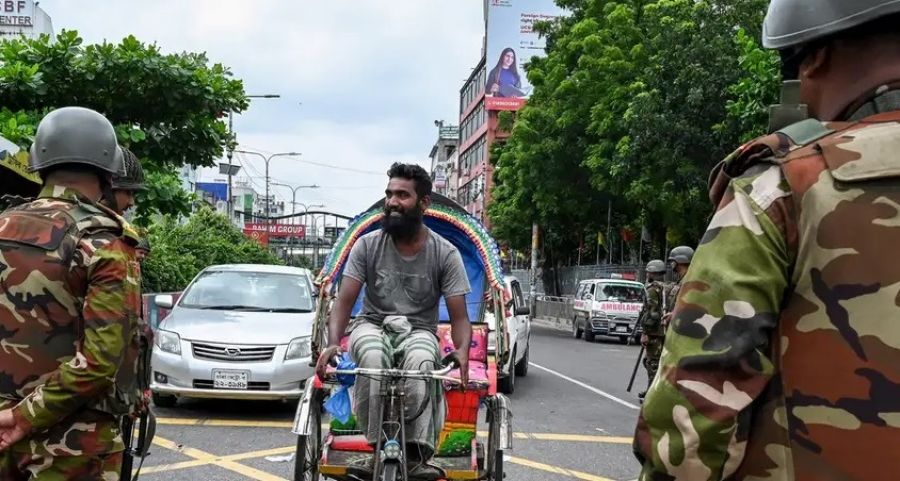 Unidades militares patrullaban la mañana de este sábado (20.07.2024) las habitualmente saturadas calles de la capital de Bangladesh, Daca, para garantizar el cumplimiento del toque de queda impuesto por las autoridades destinado a sofocar las protestas estudiantes contra las cuotas de empleo gubernamentales, que solo esta semana han dejado al menos 115 muertos. Se prevé que la medida se extienda hasta las 10 a.m. del domingo, con dos horas de pausa para que la ciudadanía pueda comprar alimentos.