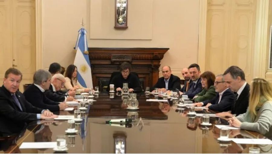 Completan la lista de asistentes el titular del Banco Central de la República Argentina, Santiago Bausili; el asesor presidencial, Santiago Caputo; y el vocero presidencial, Manuel Adorni.
