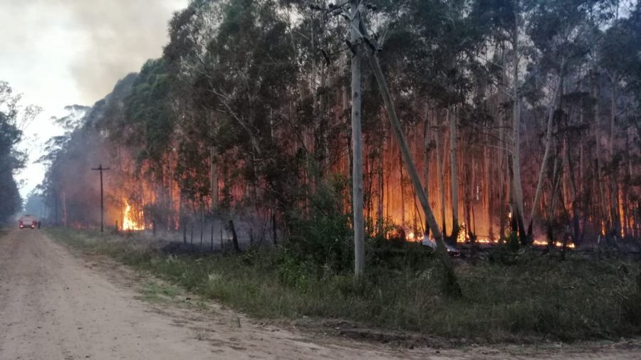 En el lugar trabaja una dotación de más 50 personas, entre los que se destacan bomberos voluntarios, brigadistas forestales, y miembros de Defensa Civil municipal.