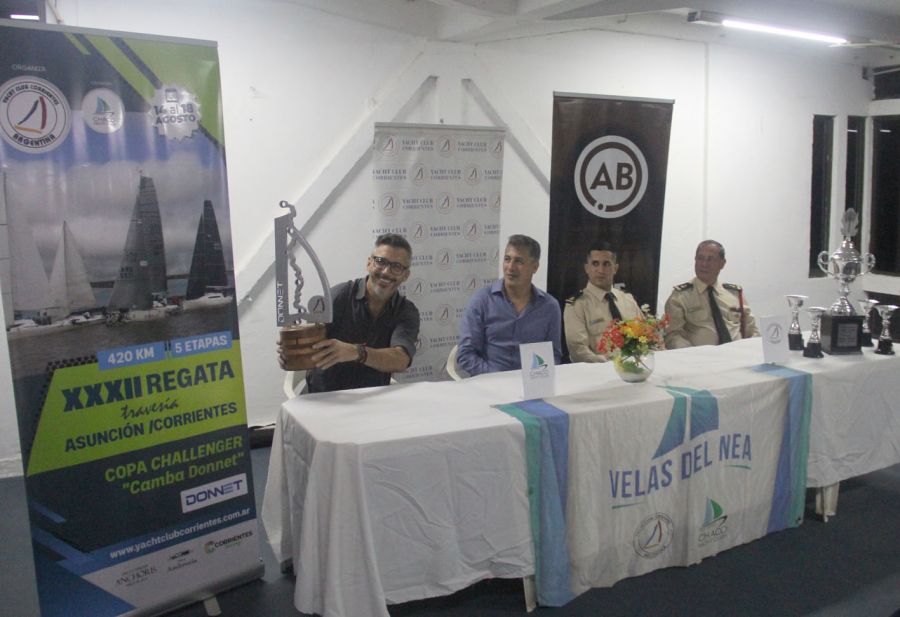 En la noche del martes, se realizó la conferencia de prensa y reunión de timoneles, como lanzamiento oficial de la XXXIIº edición de la Regata Travesía “Asunción – Corrientes” que se realizará del 14 al 18 de agosto próximo. Organizada por el Yacht Club Corrientes, como lo hacen desde 1988. Para ello en sede de la costanera correntina, el presidente de la entidad, Cristian Coquet junto a autoridades de la Prefectura Naval Argentina y Pablo Donnet, principal sponsor de la regata (hijo del homenajeado y emblema de la náutica regional), dieron a conocer detalles de la competencia.