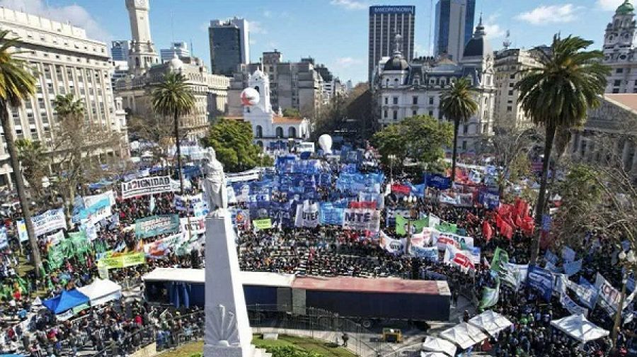 Previamente había tomado la palabra el premio Nobel de la Paz, Adolfo Pérez Esquivel, quien dijo que "al hambre y desempleo la forma de enfrentarlo es la unidad", a la vez que alertó que "un gobierno que no está al servicio del pueblo está en contra del pueblo", por lo que llamó a "impedir la entrega del país".