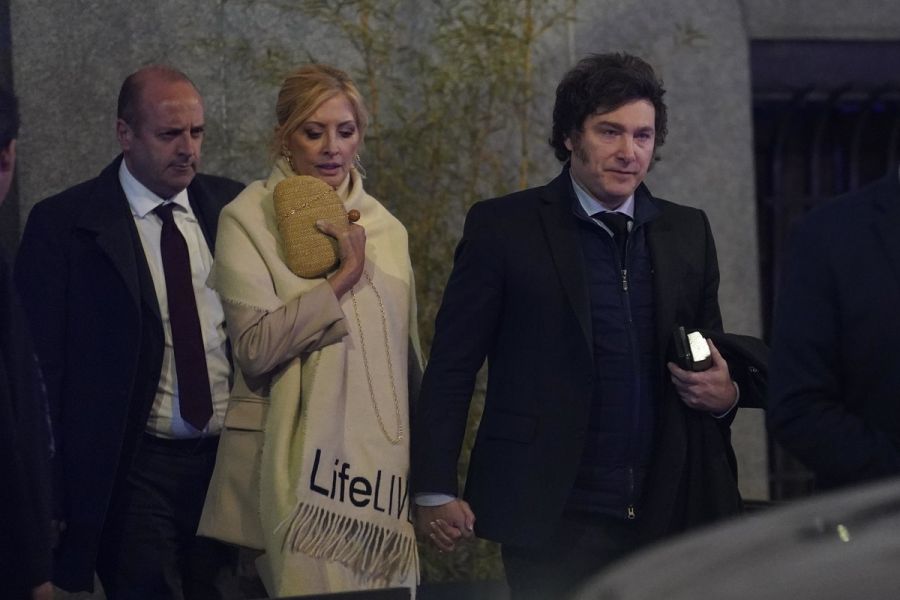 Milei y González asistieron al Palacio Libertad, tal el nombre actual del edificio, para el acto de presentación de la ley de Juicio por Jurados, que incluyó la puesta en escena de la obra teatral "La Noche del 16 de enero".
