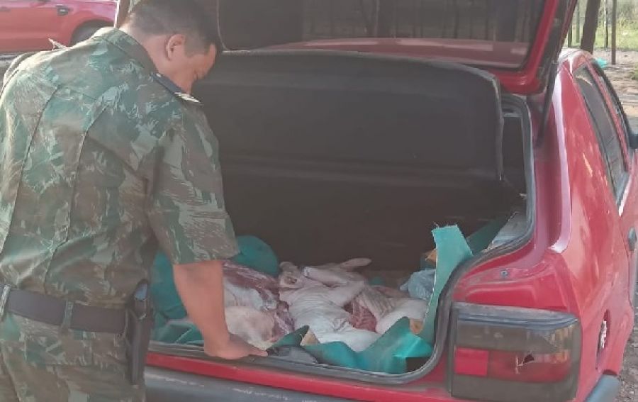 Ahí se descubrió que transportaban embolsadas carne porcina sin la documentación sanitaria . No pudieron probar la propiedad de la carne y/o guía de consumo, por lo que se desprende había sido faenada de manera irregular