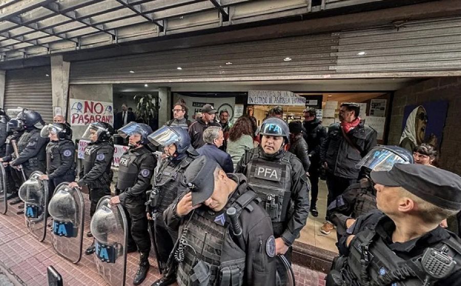 Este lunes por la mañana la Policía Federal impidió el ingreso de estudiantes y trabajadores de la Universidad Nacional Madres de Plaza de Mayo (UNMa) a la sede educativa, ubicada sobre la calle Defensa 119, en la Ciudad Autónoma de Buenos Aires.