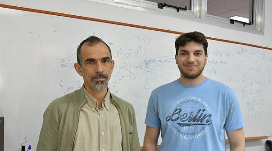 El doctor Manuel Pulido junto a Francisco Vargas uno de los estudiantes que integró el equipo que desarrolló el sistema de análisis de sentencias judiciales premiado en el JAIIO 53. (Foto: Natacha Espinoza)