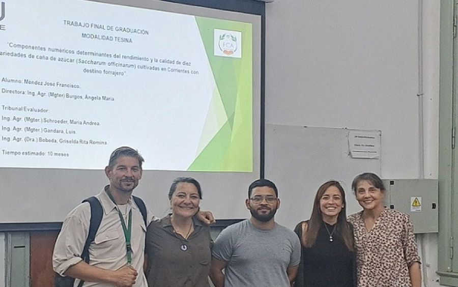 El trabajo, cuyo título es “Componentes numéricos determinantes del rendimiento y la calidad de diez variedades de caña de azúcar (Saccharum officinarum) cultivadas en Corrientes con destino forrajero”, contó con la dirección y asesoramiento de la ing. agr. (Mgter) Ángela Burgos, docente investigadora en la Cátedra Cultivos III de la Facultad de Ciencias Agrarias de la UNNE.