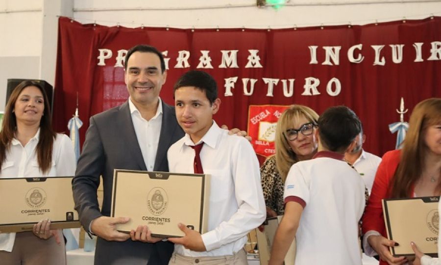 El gobernador Gustavo Valdés hizo entrega de 556 notebooks pertenecientes al programa “Incluir Futuro” en la escuela Normal de la localidad de Bella Vista.