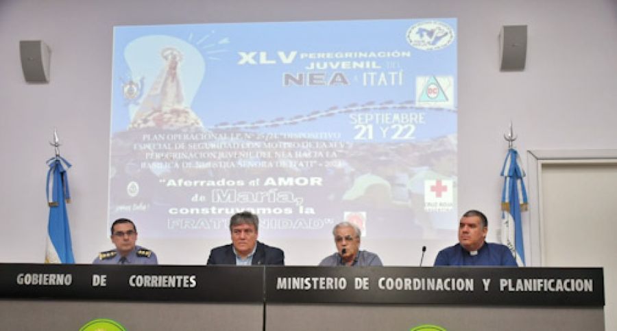Funcionarios del Ministerio de Seguridad de la Provincia y la Policía de Corrientes, presentaron el dispositivo de seguridad para la XLV Peregrinación Juvenil del NEA hacia la Basílica de Itatí, que se llevará adelante el próximo sábado 21 y domingo 22 de septiembre.