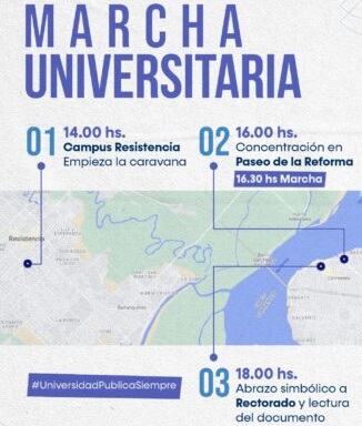 Allí está prevista la concentración a las 16 horas. Arribarán también las columnas que saldrán desde los Campus “Deodoro Roca” (Av. Libertad Nº 5470) y “Sargento Cabral” (Juan Bautista Cabral, 2001) de la UNNE. Todas unidas marcharán luego por la costanera correntina hasta la calle Salta. Por dicha arteria céntrica continuará la movilización hasta llegar al Instituto Rectorado de la UNNE, donde a las 18 horas se realizará un abrazo simbólico y se dará lectura al documento.
