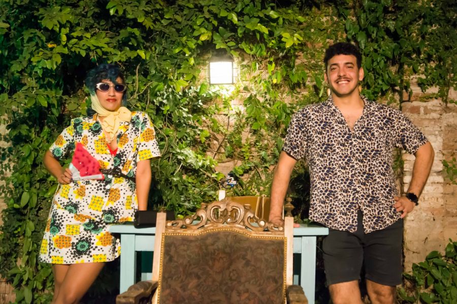 - Yaco: Quería destacar de ella esto medio caniche, inquieto, entre desconfiada y maníaca. Ir viajando entre esos estados a los que va y lleva el mismo relato. Entonces lo encaro bien físico, cómo está el cuerpo cuando digo tal parte o hago tal acción, ya sea moverme, alternar la ubicación de las piernas… desde los dedos de los pies hasta la punta del pelo, cómo digo, siento, porque actuar es como zambullirse de cuerpo entero. La Magdalena es un personaje que tiene casi dos años, entonces los modos de ella los tengo, pero al estar en este formato mucho más íntimo y solitario, su particularidad está a la vista. Cómo habla, cómo se comporta, cuáles son sus mañas, la ansiedad que se refleja entre los gestos con la cartera y el abanico. Generalmente, antes de la función, acudo al viejo y confiable “estar en una”, algo que era como un ritual entre las chicas de Crucificción, poniendo musiquita, pasando el texto desordenadamente o practicando con Hernaldo en personaje, montado en la Magda. Sinceramente, quiero que la Magda, aunque muy desde la fantasía Almodóvar, sea cercana y parezca cualquier tía o abuela de cualquier ser humano… que haga acordar a alguien, a algo, y quede en el corazón del espectador. Y como dice mi maestra de Clown, Vane Ruiz, “lo que sale del corazón, llega al corazón”. El laburo y corazón, mucho corazón.