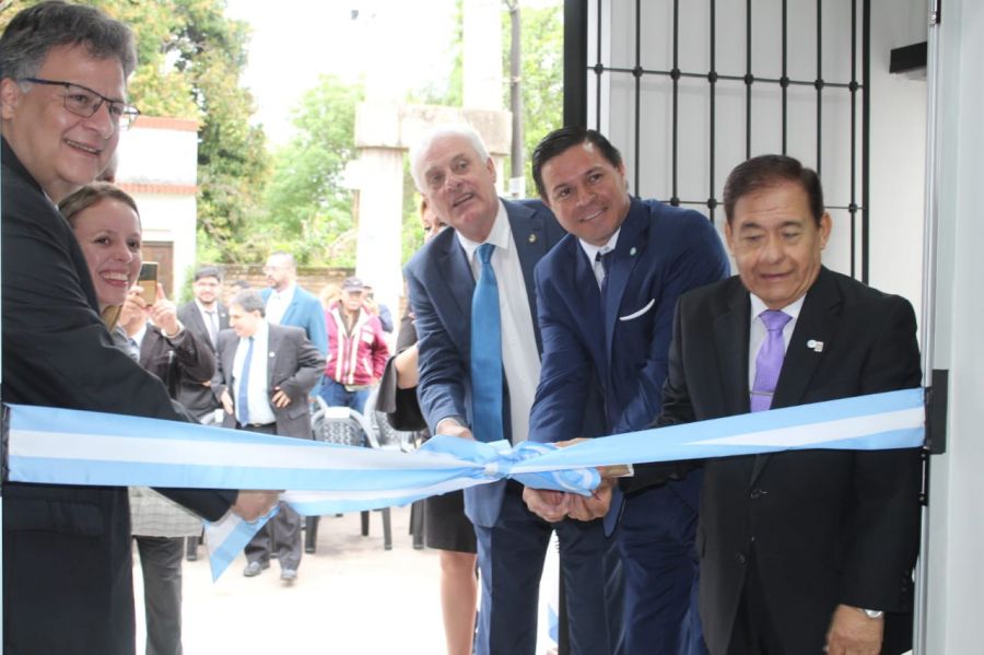 Luego, el cura Párraco Horacio Abel Villasanti bendijo el edificio y se proyectó un video con palabras de la presidente de la Junta Federal de Cortes y Superiores Tribunales de las Provincias Argentinas y Ciudad Autónoma de Buenos Aires -JUFEJUS. Doctora Emilia María Valle.