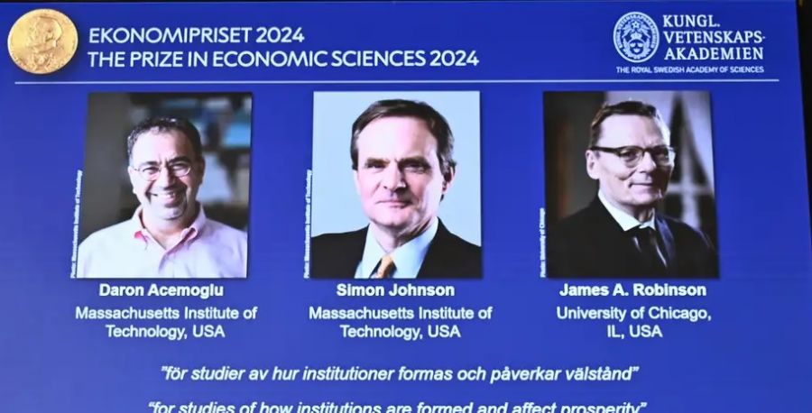 El Premio Nobel de Economía 2024 recae en el turco-estadounidense Daron Acemoglu y los británico-estadounidenses Simon Johnson y James A. Robinson por investigaciones sobre las diferencias de prosperidad entre naciones.