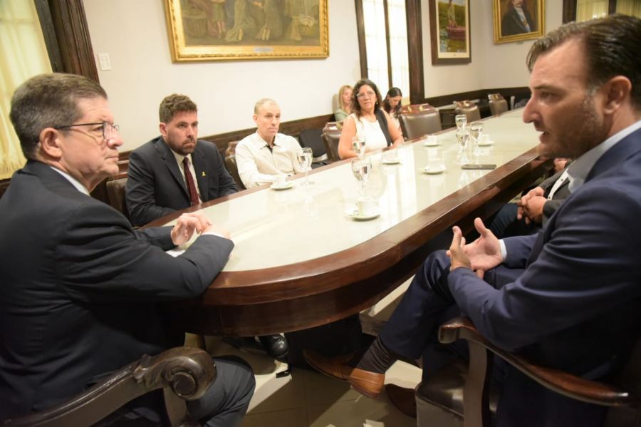 El vicegobernador de la provincia, Pedro Braillard Poccard, recibió en el Salón de Acuerdos de la Legislatura al referente de la Cátedra Libre Derechos Humanos, Genocidio y Holocausto de la UNNE e integrantes de la Asociación de Abogados Judíos de la República Argentina.
