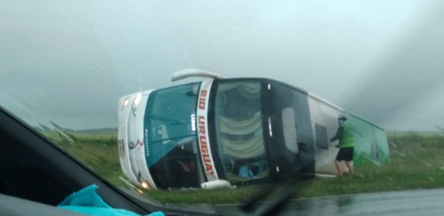 Un accidente vial tuvo lugar esta mañana sobre la Ruta Nacional N°12, a la altura del km 1.149, en el Paraje Yahapé, cuando un colectivo de larga distancia sufrió un despiste y posterior vuelco.