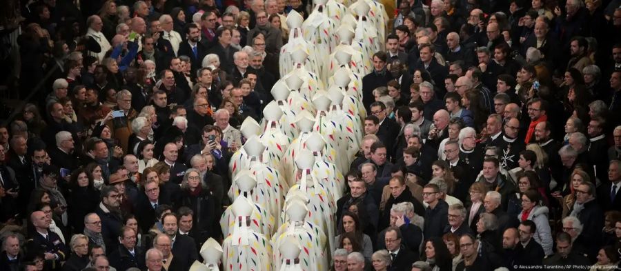 También asistieron 150 personas que viven en condiciones precarias, a las que luego se invitó a comer, casi 170 obispos, y un sacerdote de cada una de las 106 parroquias de París y de las siete iglesias católicas de rito oriental.